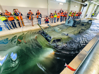 ![]() Patria 6x6 näytti myös sukellustaitojaan. |