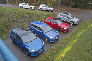 ![]() Vuoden Auto Suomessa 2019 -finaalissa olivat mukana Ford Focus (edessä vs.), Kia Ceed, Mercedes-Benz A-sarja, Škoda Karoq, Volvo V60 (takana vas.) ja Volvo XC40. |