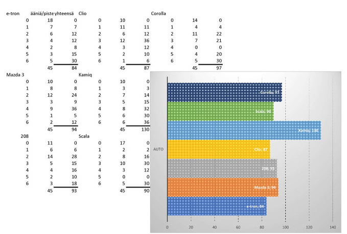 Vuoden Auto Suomessa 2020 -finaalin pistejako.