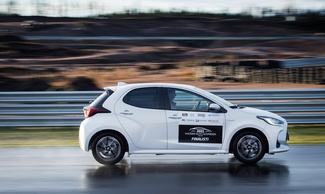 Kuuden auton finaaliin selvinneet Peugeot 2008, Porsche Taycan, Renault Captur, Škoda Octavia, Toyota Yaris ja Volkswagen ID.3 olivat raatilaisten koeajettavana KymiRingin moottoriradan ympäristössä 18.11.